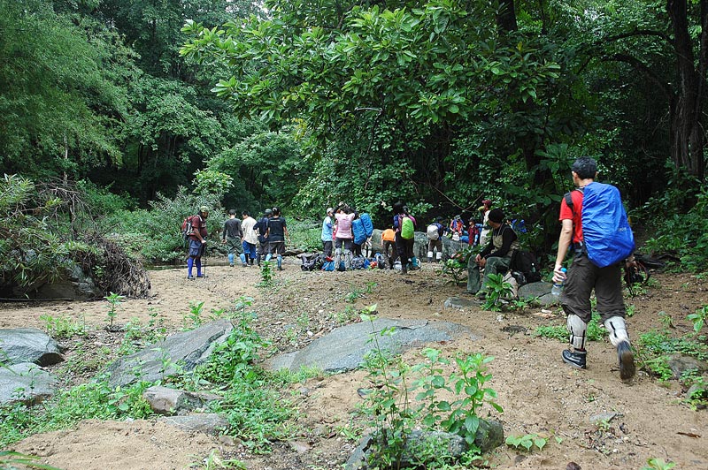 เดินขึ้นทางห้วยแม่ไข ตามธารน้ำในช่วงแรก