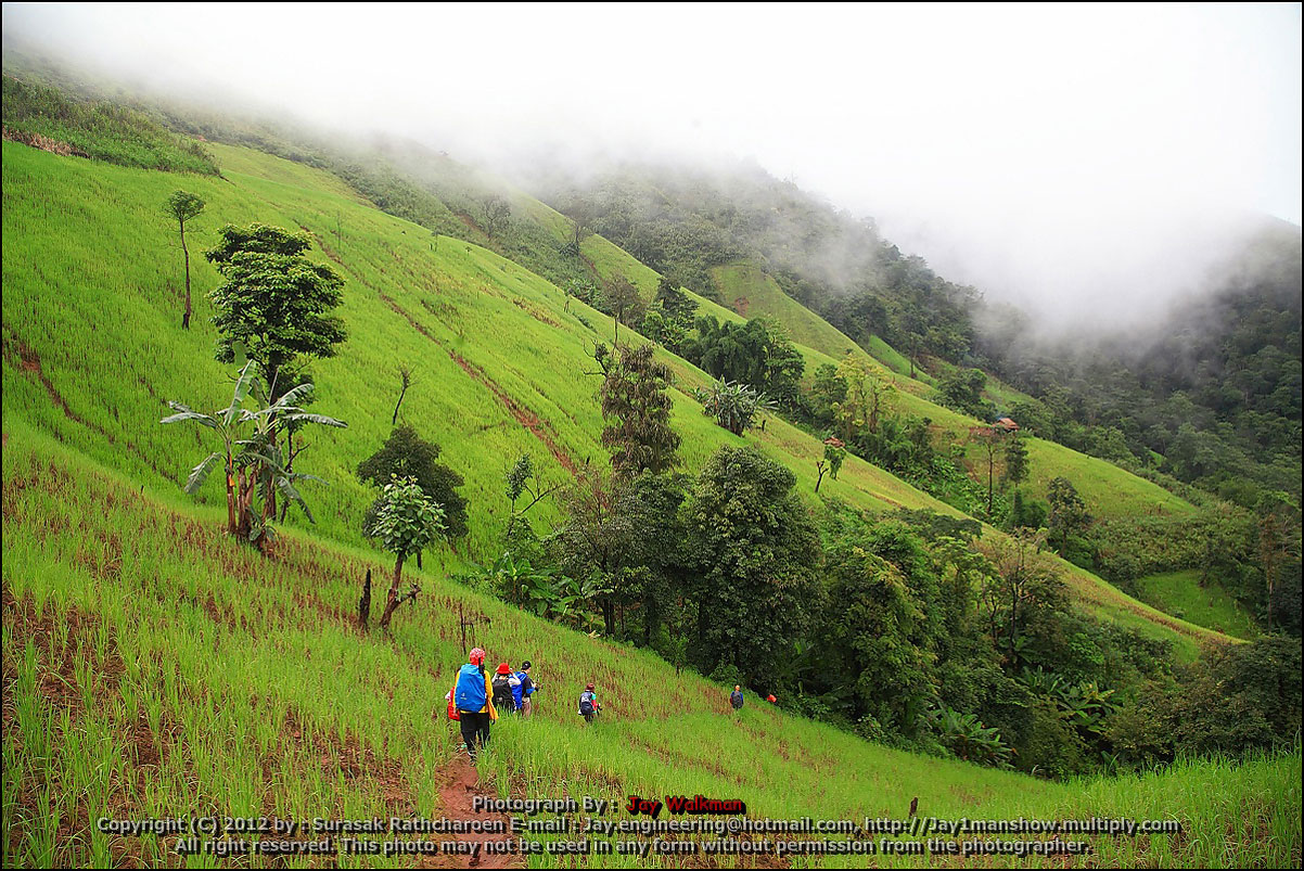 เดินตามไหลเขาไปเรื่อยๆ จุดหมายปลายทางคือบนยอดเขาตรงด้านหน้าของเรา