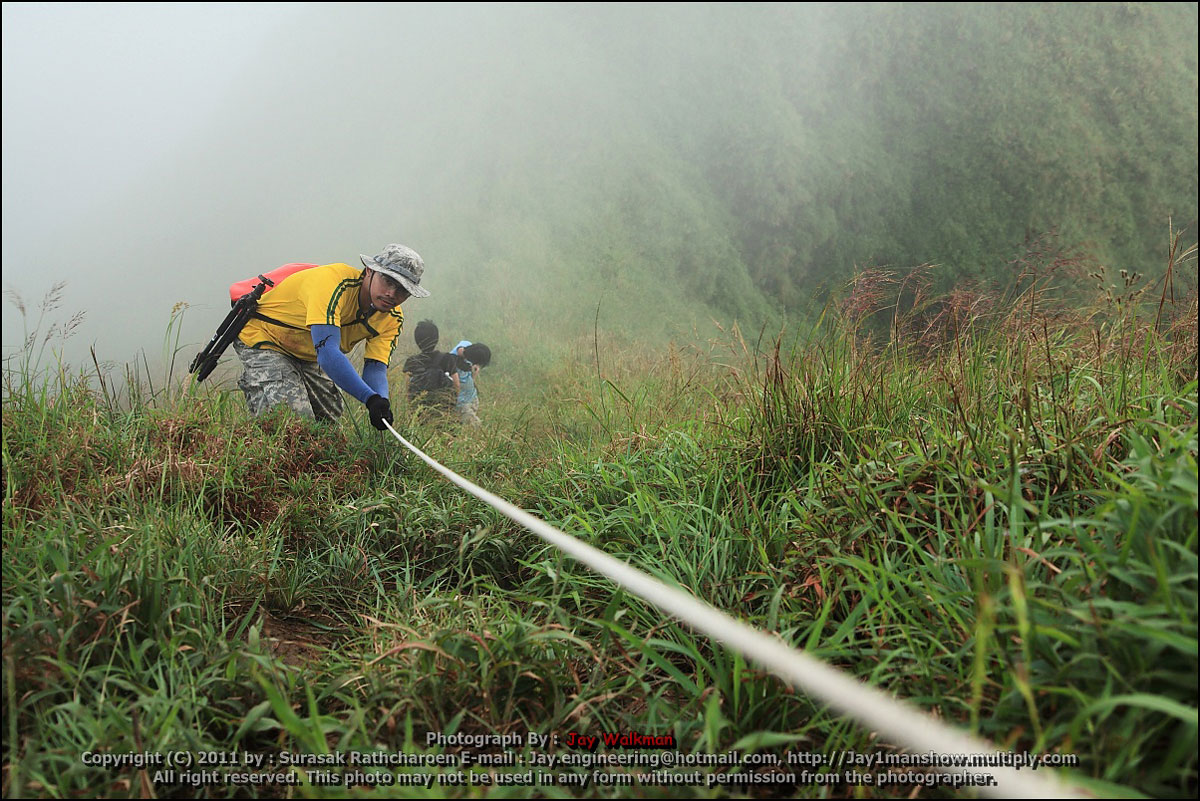 เชือกที่จับ อย่าไปเชื่อใจมากไม่ดีนะครับ เพราะบางจุดตอนนั้น เสาหมุดที่ปักบางจุดหลุดออกมา ถ้าประมาทนี้อันตรายมากๆครับ