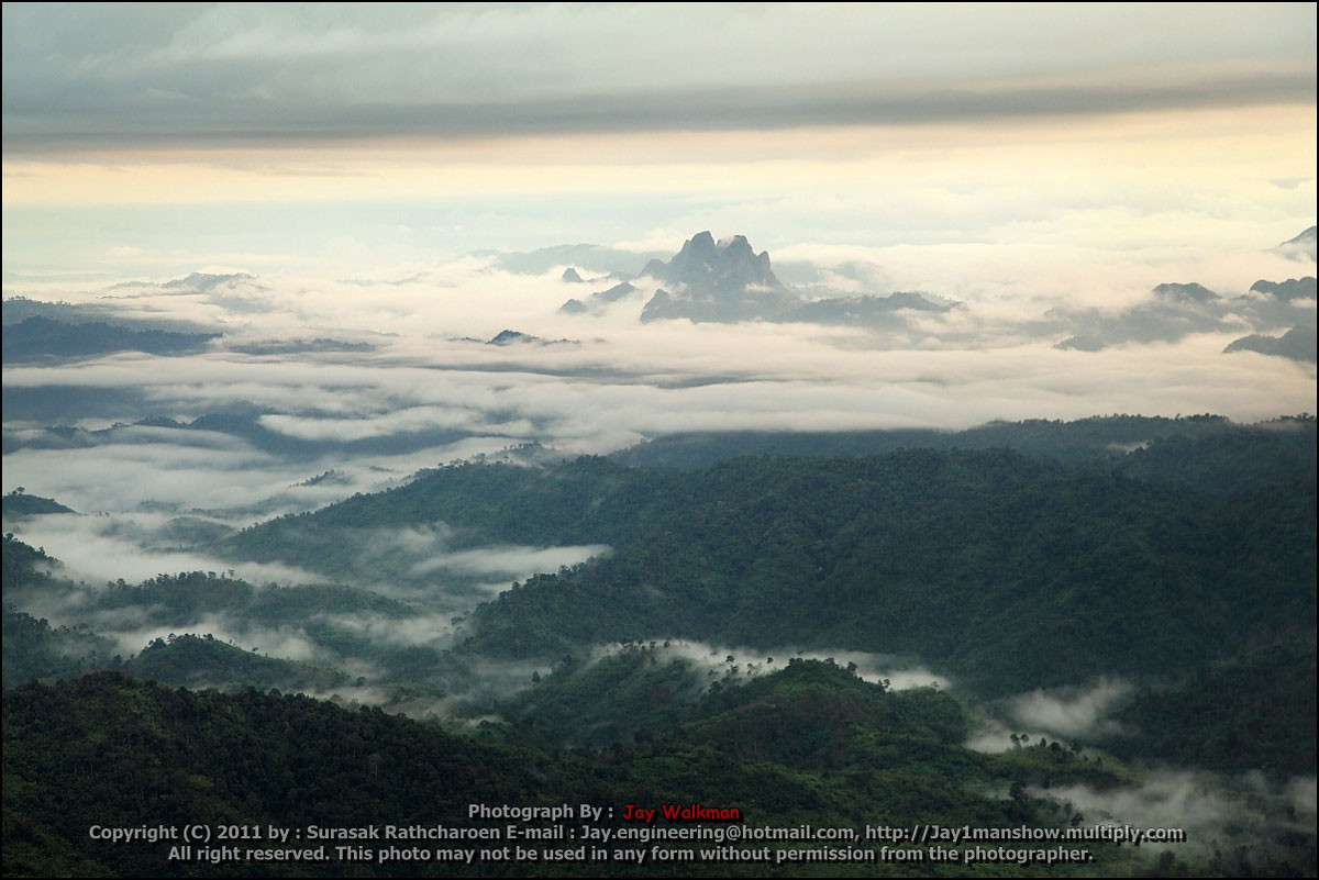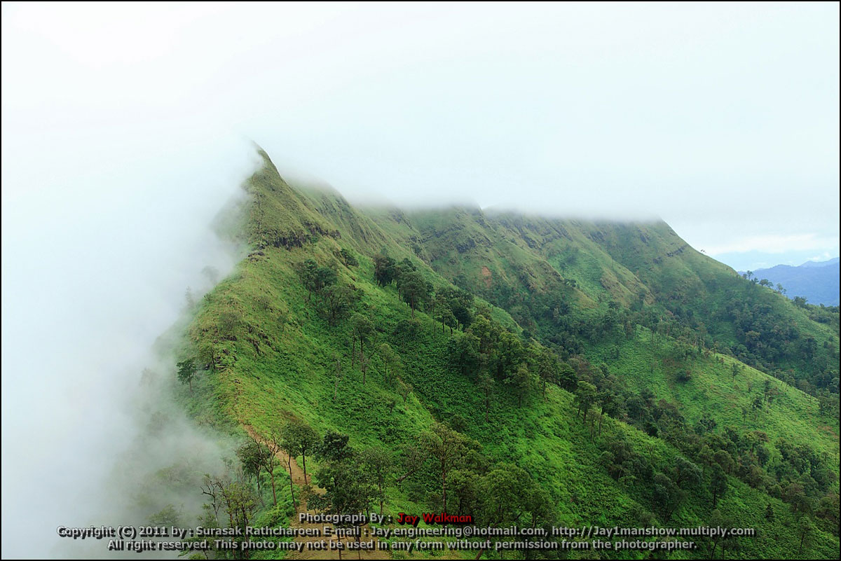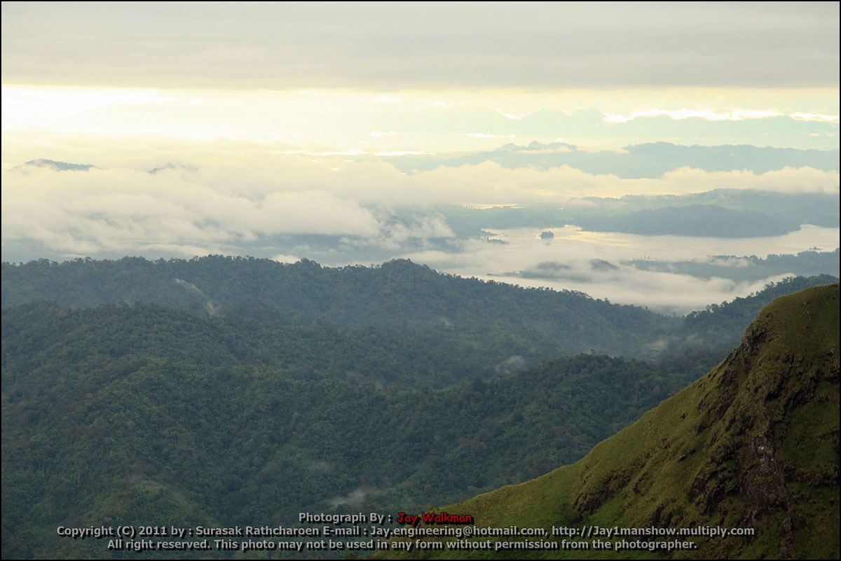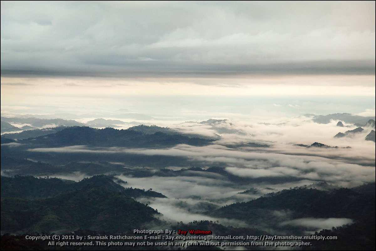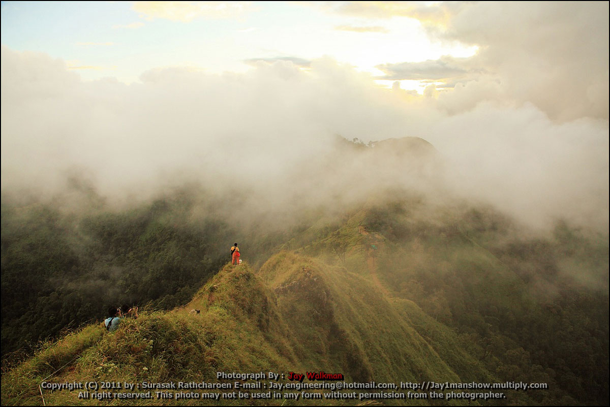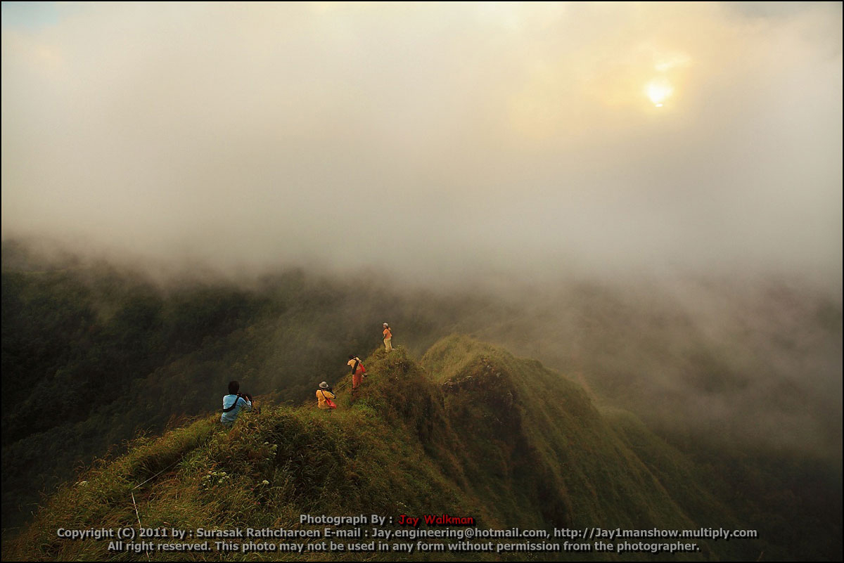 ช่วงที่ขึ้นไปนั้นฟ้าปิดครับ เจอหมอกปกคลุม ไม่เห็นอะไรเลย แต่ก็มีบางช่วงที่ลมพัด แสงสาดส่องลงมาให้ได้กดชัตเตอร์กัน