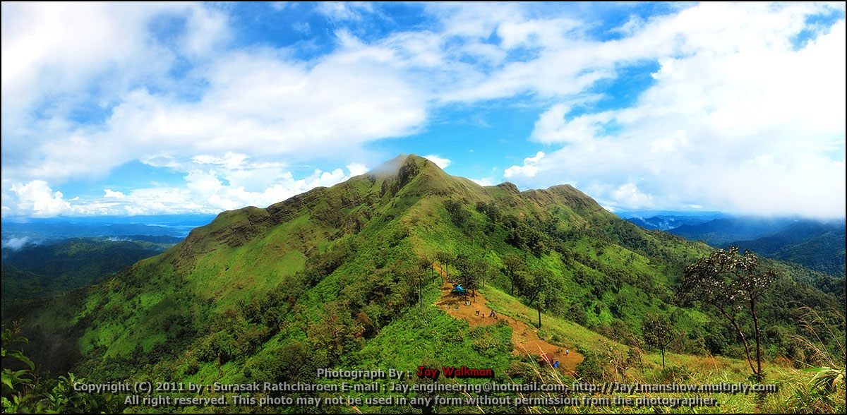 # เส้นทางเดินไปสู่ยอดเขาช้างเผือก เป็นป่าโปร่งสลับกับทุ่งหญ้า และดงไผ่ในบางช่วง บนยอดเขาสามารถชมวิวได้รอบทิศทาง 360 องศา