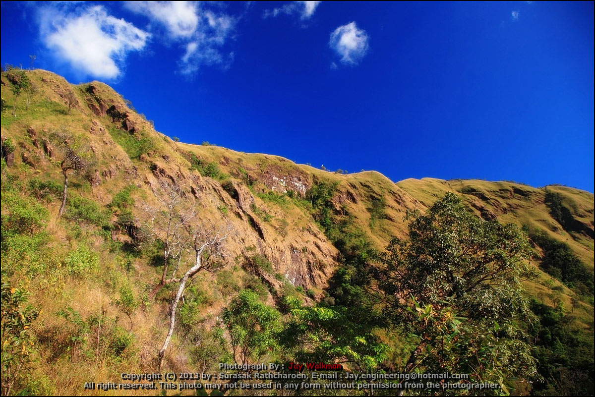 ช่วงแรกของการเดิน แทบไม่มีวิวให้ได้เก็บภาพเลย มาคว้ากล้องอีกทีก็ตอนตัดขึ้นยอด พอมองเห็นช่อง วิวฝั่งม่อนคลุย