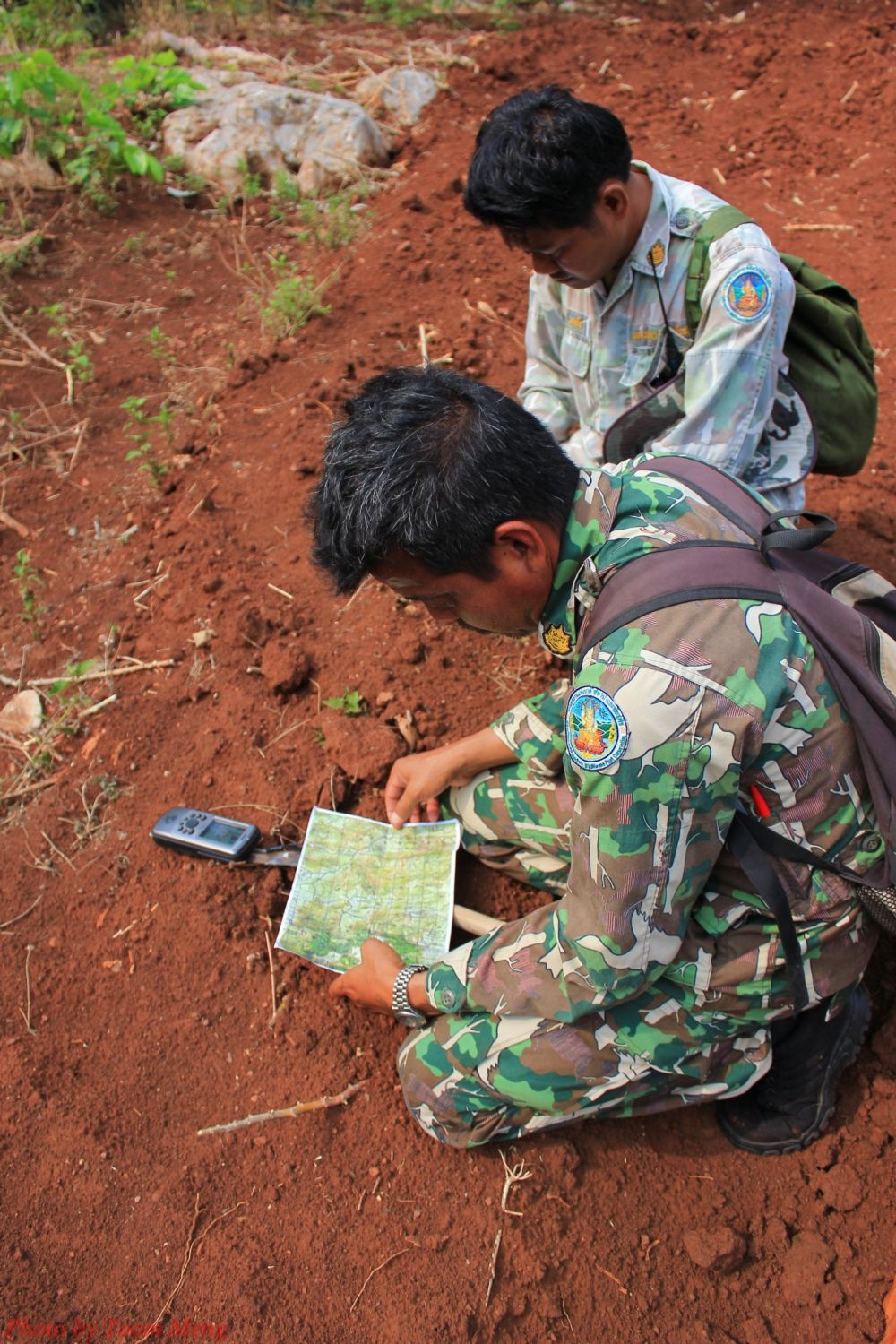 ผมเห็นหัวหน้าเขต เอาเข็มทิศมาเช็คกับ GPS ว่าเส้นทางตรงกันหรือเปล่า