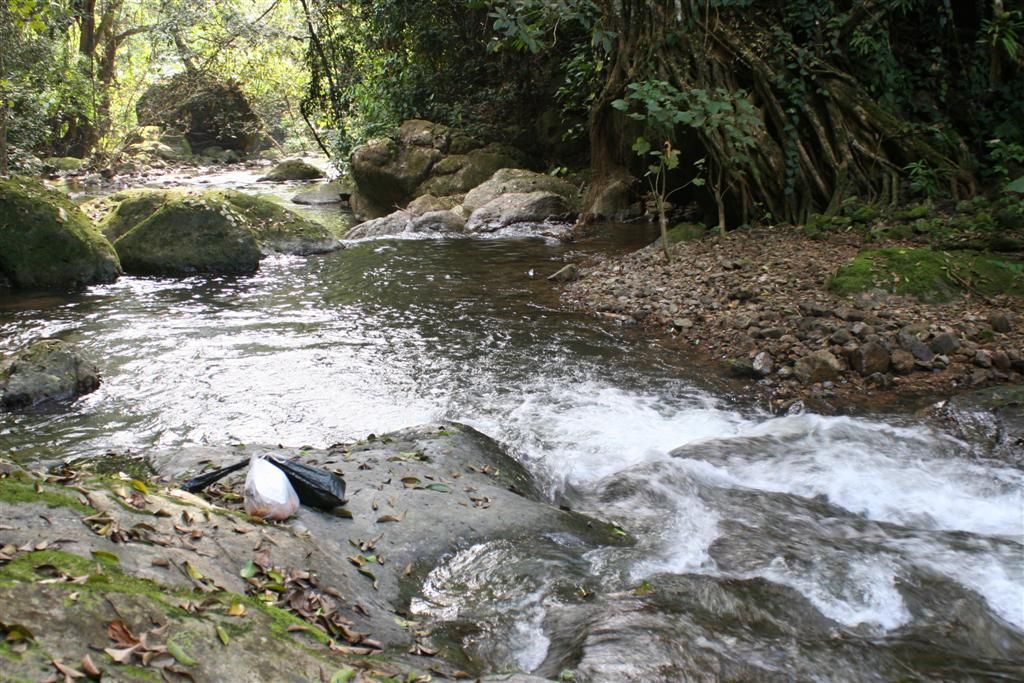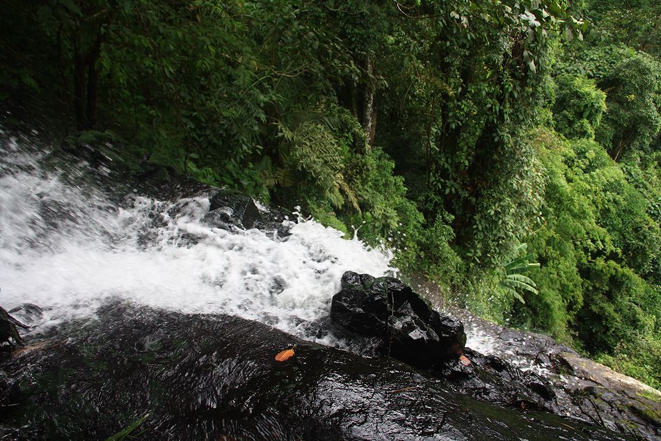 เดินทั้งวันก็ยังไม่ถึง ตัดมาอีกวัน เราพบน้ำตกเล็กๆอยู่ริมหน้าผาสูงชัน