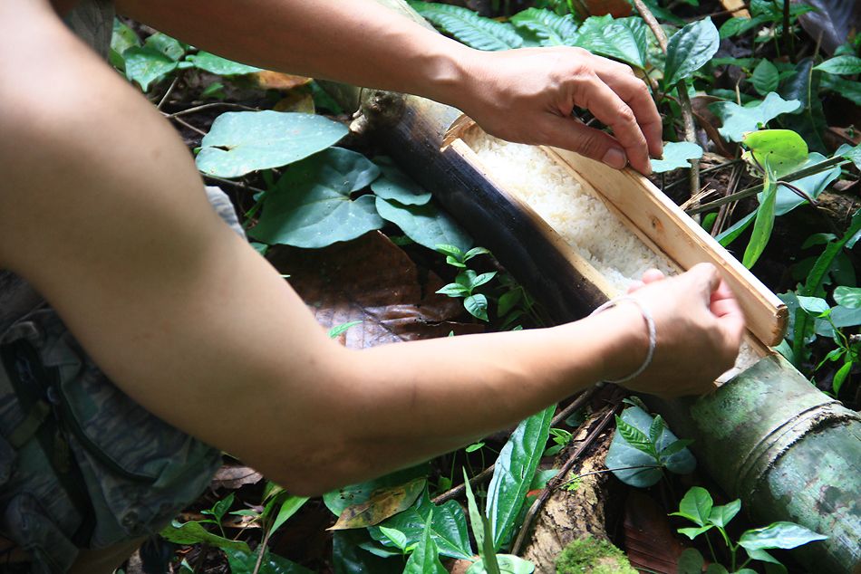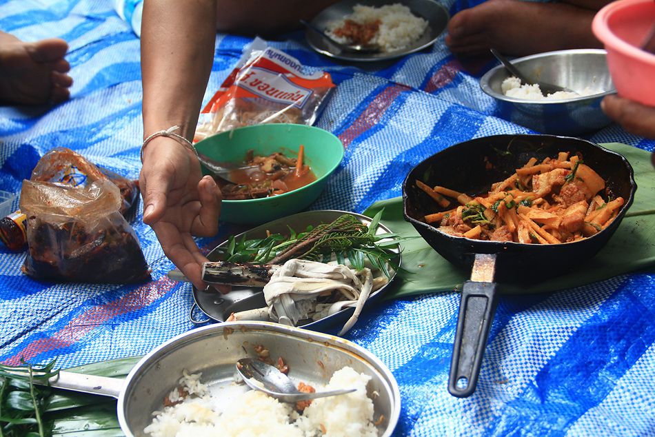 กับข้าวกับปลาพึ่งพาตามธรรมชาติ หน่อไม้ เห็ด ยอดหวาย ยอดข่า ยอดผักหนาม ชาวบ้านกินยังไงเราก็กินอย่างนั้น