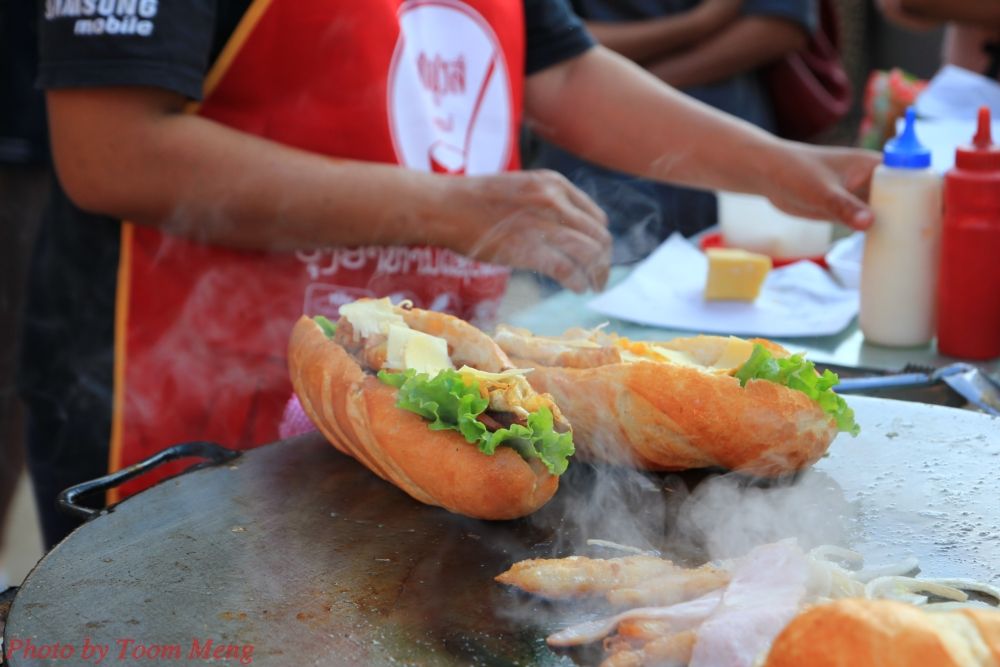 แซนวิชลาวครับ ช่วงปีใหม่นี้ ราคา 10000 -25000 กีบ (40 -100 บาท)