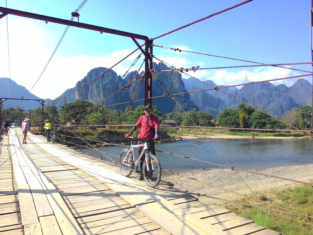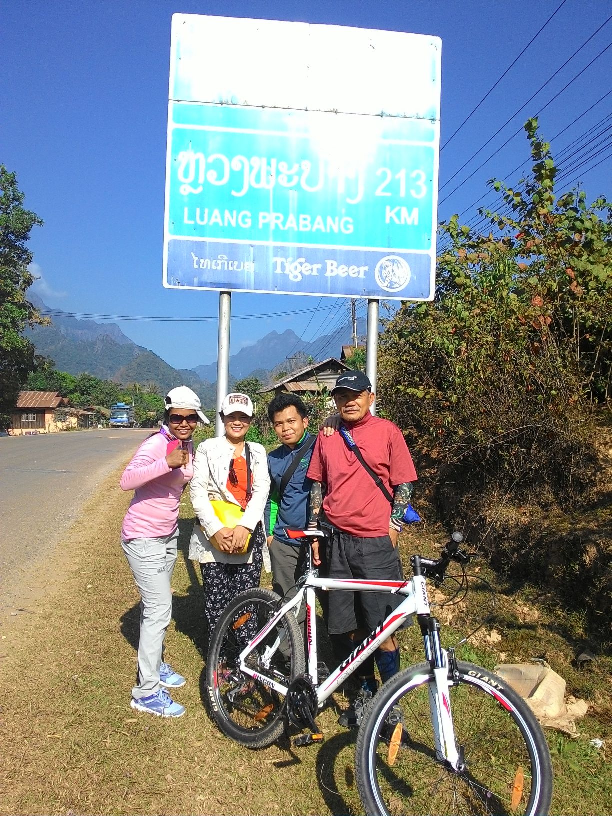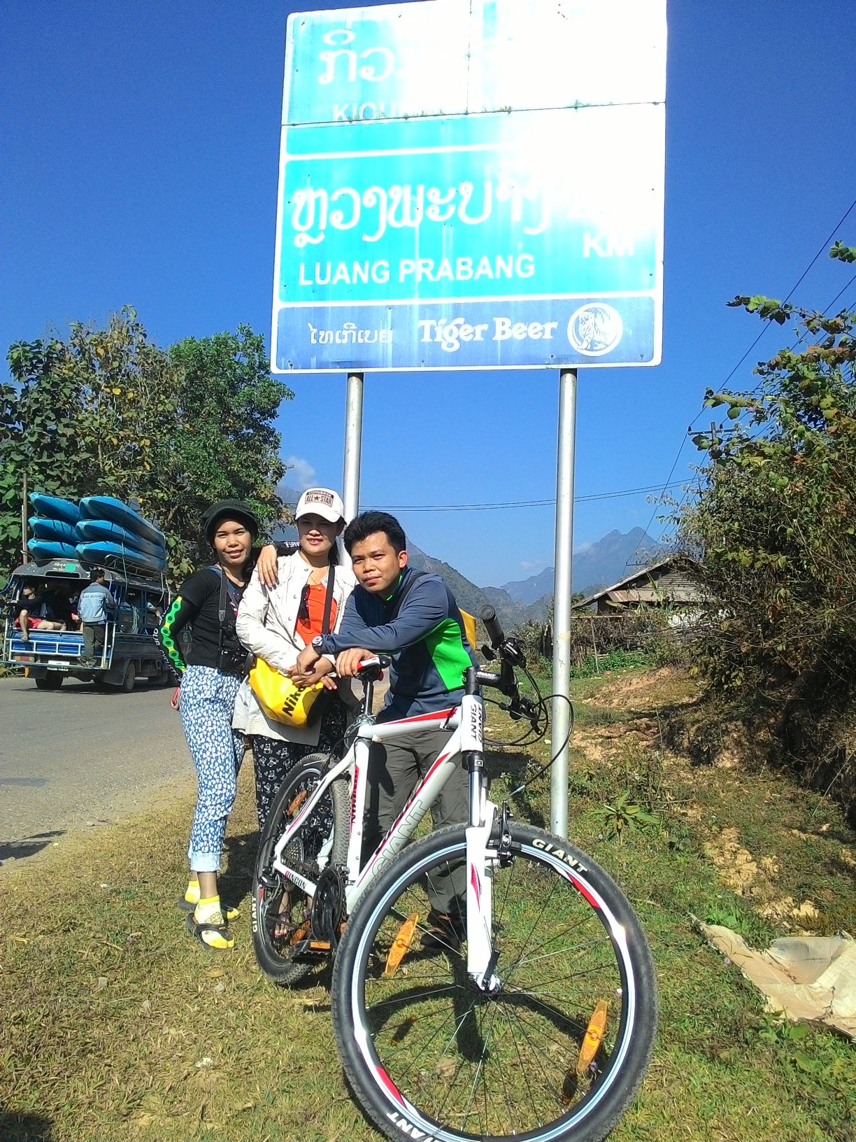 ถ่ายกับป้ายหน่อย ไม่ได้ไปถึงหลวงพระบางหรอกครับ ปั่นแค่ในวังวียงนี่แหละ เวลาไม่พอ