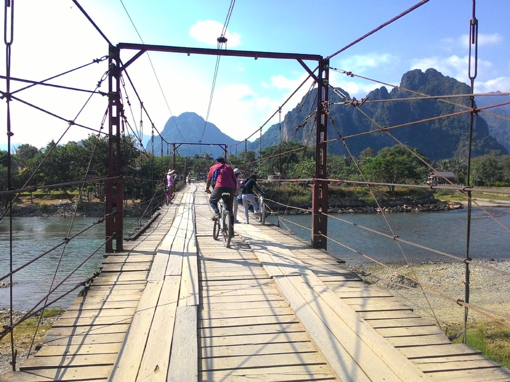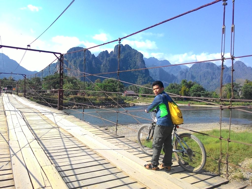 การขี่จักรยานข้ามสะพานที่ลาวให้เตรียมเงินไว้เลยนะครับ อย่างน้อย 2 หมื่นกีบ เป็นค่าผ่านทาง