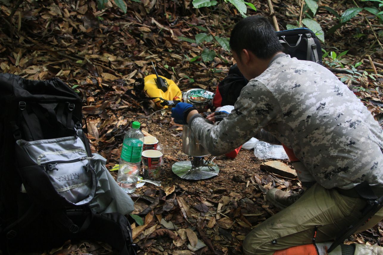 หนังจากกรองน้ำเสร็จก็หาทำเลกินข้าวเช้า เริ่มเดินตั้งแต่ 6 โมงเช้าตอนนี้ 9 โมงแล้วจัดการต้มน้ำต้มมาม่าเปิดปลากระป๋องตอนนี้ปล่อยให้เจ้าหน้าที่เดินไปก่อนเพราะช่วงนี้ผมพอเดินตามรอยได้
