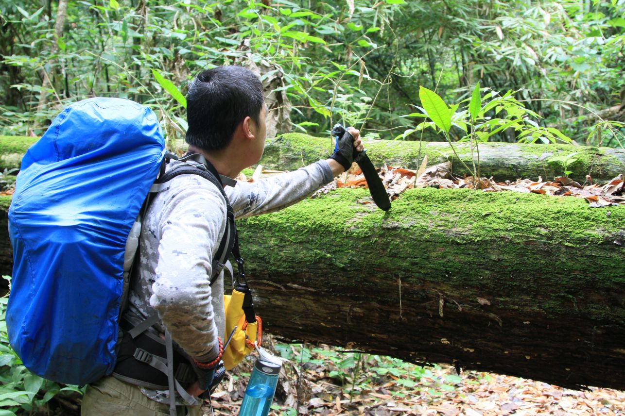 ต้นไม้ล้มกิ่งก้านหักขวางทางต้องใช้มีดยาวฟันผ่านไป