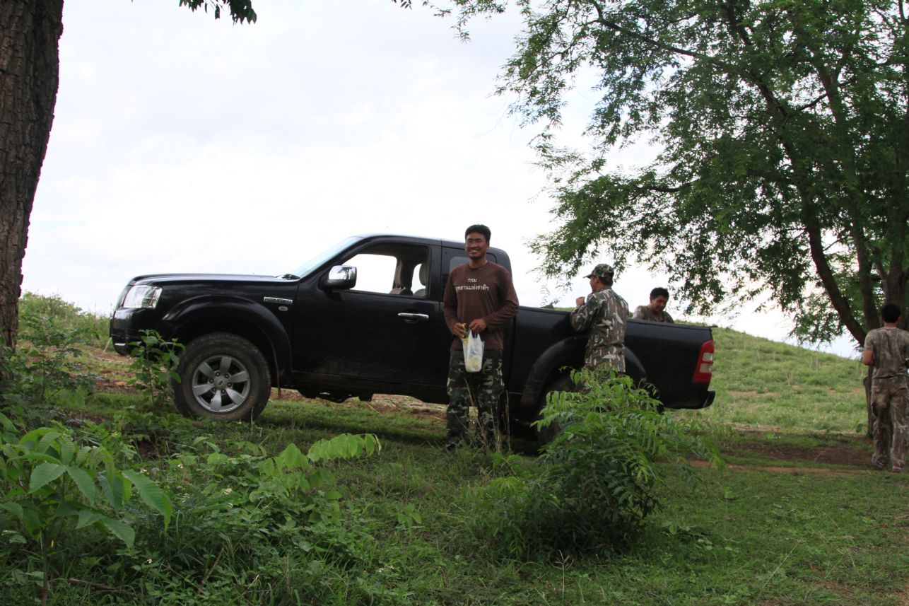 ในที่สุดเราก็มาถึงจุดหมายเจ้าหน้าที่เอารถมารอรับแล้วทีมที่เดินล่วงหน้ามารอนานแล้ว การเดินตามเจ้าหน้าที่ที่ออกลาดตะเวณมีความเสี่ยงครับเพราะบริเวณนั้นเป็นหมูป่าเยอะ เขียนรีวิวไม่เก่งครับเอารูปมาให้ดูก็แล้วกัน