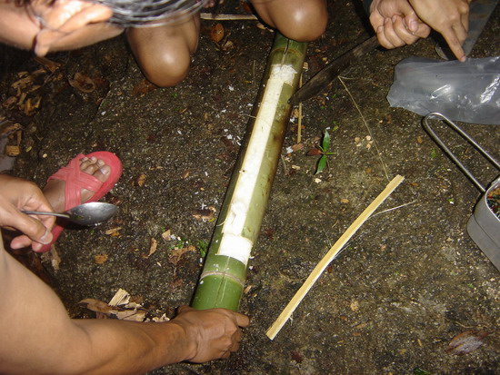 หูงข้าวก็ไม้ไผ่ในป่านั่นและมีมากมายหม้อไม่ต้องเอาขึ้นมา