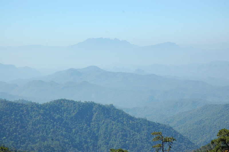 อ่างขางเทือกเขาทอดยาวและฟ้าห่มปกยอดแหลมขวามือ
