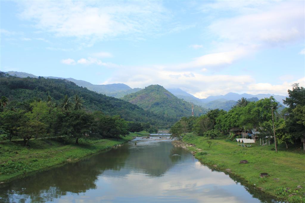 มองจากสะพานไปหาต้นน้ำจากขุนเขา