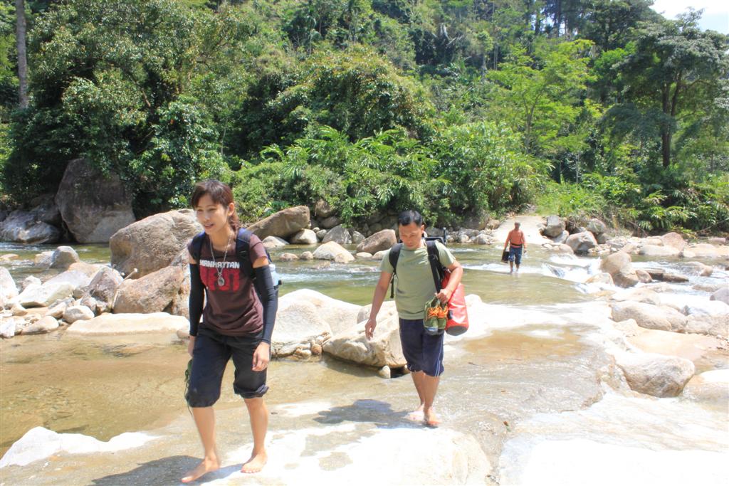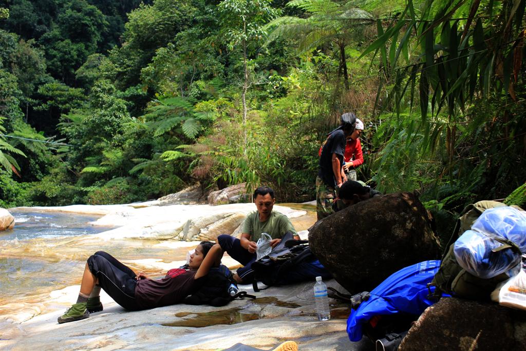 ยิ่งพื้นที่สูงขึ้นไปสายน้ำก็ ค่อย ๆแยกแบ่งสาย เล็กลง ๆ สำหรับ ทาก ไม่ต้องห่วงเนื่องจากฝนเพิ่งจะลงหนักก่อน ขึ้นมา 2-3 วันแล้วและพื้นยังชุ่มแฉะตลอดทางออกมาเต้นระบำรอพวกเราอยู่เลย เดินปลดได้ตลอดทาง 2-5 ก้าวเกาะ ว่างั้นในวันแรก แต่ก็คิดว่าน่าจะยังน้อยกว่าฤดูฝน