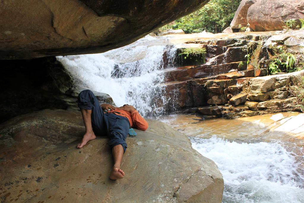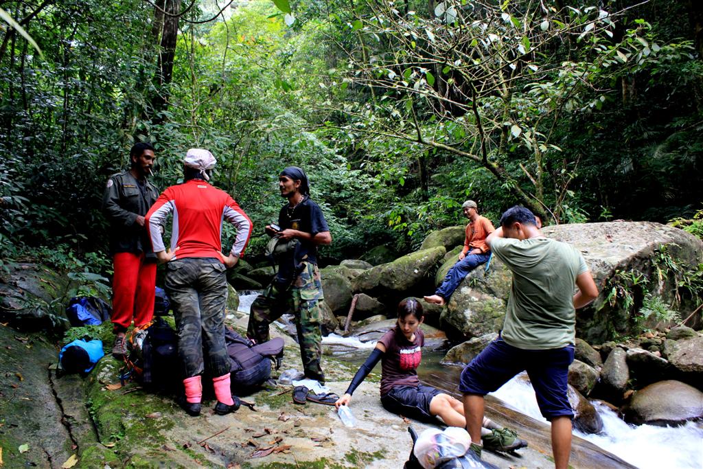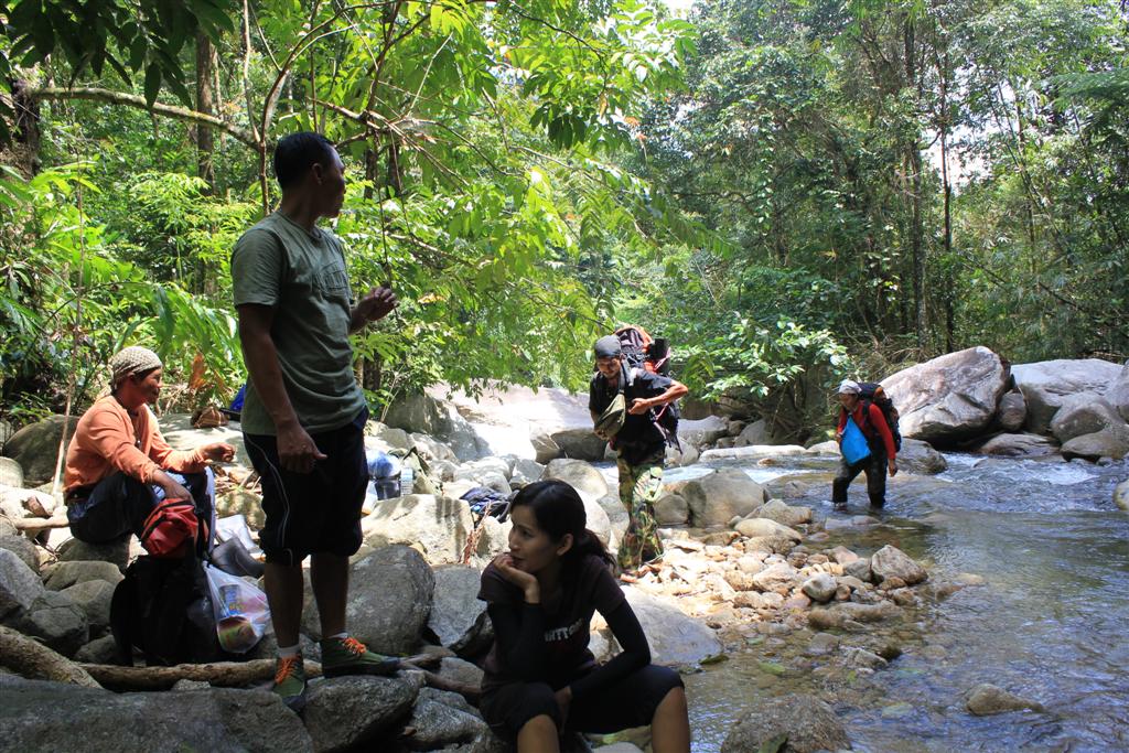 ที่นี่น้ำสมบูรณ์ครับ เราเติมได้ตลอดทาง ขวดน้ำดื่มเล็ก ๆติดตัว ไม่เหมือนทางเหนือบางสถานที่ อย่างดอยเชียงดาว น้ำถัง 20ลิตร 400บาทเลย เขาช้างเผือก ก็ต้องขนขึ้นไป ไห้ลูกหาบลงมาเอาที่ร่องน้ำก็ 5 ลิตร 100 เลย ล่ะครับ ที่นี่สมบูรณ์เรื่องน้ำสมกับคำป่าชุ่มชื้น หรือป่าดิบชื้นจริง ๆถามน้องทัช บอกน้ำไม่มีเชื้อชาวบ้าน ในสวนบนเขาริมป่าก็กินน้ำห้วยกันทั้งนั้นล่ะครับ
