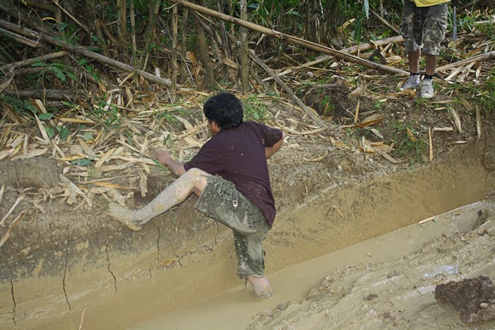 เป็นเรื่องที่ไม่คาดคิดกันมาก่อนว่าจะมาเจอทหารพม่ากลางทาง และดูเหมือนจะไม่มีเส้นทางอื่นที่ดีกว่านี้ ฝ่าย DPA จึงใช้วิธีหลบเข้าไปในป่าข้างทาง จากนั้นให้กำลังส่วนใหญ่ตรึงกำลังเตรียมพร้อม ที่เหลืออีก 2 คนพาผมวิ่งลัดเลาะตามป่ามาล่วงหน้ามาหยุดคอยในสวนยางแห่งหนึ่งห่างจากจุดที่ทหารพม่าและรถแทรกเตอร์ทำทางอยู่ราว 200 เมตร จากนั้นบรรดากองกำลัง DPA ที่เหลือก็ค่อยทยอยถอนตัวตามมาสมทบ ดูเหมือนโชคจะยังเข้าข้างผมอยู่บ้างที่ฝ่ายทหารพม่าจะไม่ทันสังเกตุเห็นพวกเรา คงจะมัวแต่สนใจการทำงานของรถแทรกเตอร์อยู่มากกว่า เพราะตอนที่ผมกับทหารDPA อีกสองคนที่พาผมวิ่งมานั้น ผมสังเกตุจากเสียงรถและแนวต้นไม้ที่สั่นไหวแสดงให้เห็นว่าเราอยู่ห่างจากรถแทรคเตอร์ไม่ถึง 30 เมตรด้วยซ้ำไป ไม่งั้นวันนี้อาจไม่มีโอกาสมาเล่าเรื่องนี้ที่นี่