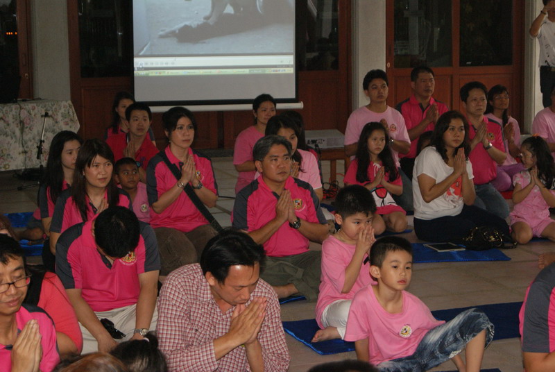 - 13.30 น. เริ่มกิจกรรม สวดมนต์ นั่งสมาธิ ฟังธรรม บรรยายเรื่อง กำลังใจและเป้าหมายในชีวิต