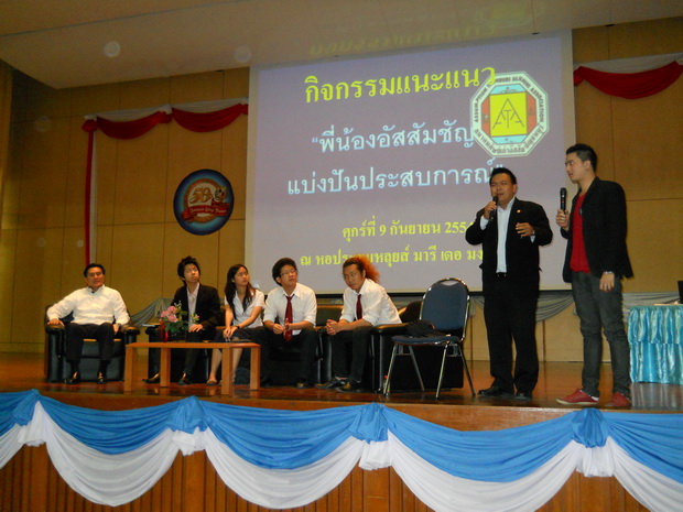 วันศุกร์ที่ 9 กันยายน 2554 ที่ผ่านมา ทางสมาคมฯ ได้เชิญตัวแทนรุ่นทั้งที่กำลังศึกษาอยู่ และเรียนจบแล้ว และประสบความสำเร็จในชีวิตมาพูดคุยแลกเปลี่ยนประสบการณ์ให้น้องๆ เพื่อเป็นแนวทางในการดำเนินชีวิต และการเลือกเรียนอย่างไรให้ประสบความสำเร็จ รูปแบบในการจัดงานจะเป็นลักษณะของการเสวนา โดยจัดเวทีเป็นการนั่งโซฟา ร่วมแบ่งปันประสบการณ์ วิทยากรผู้นำการสนทนา คือ นายชยานันท์ มโนเกษมสุข โดยมีรุ่นพี่ที่มาร่วมกิจกรรมแบ่งปันประสบการณ์ในครั้งนี้ ได้แก่ นายวิเชียร รุ่งปัญญา, นายประเสริฐ วชิรปราการสกุล, นายรังสิต พูลทรัพย์เจริญ, แพทย์หญิงอมล สิงห์กุล, นายชยานันท์ มโนเกษมสุข, นายชินัณ บุญเรืองรัตน์, นายอิศรา เอี่ยมจรัส, นายโยธิน พงศ์สิทธิโชค, นายณรงค์เดช ตันติลิขิตกุล, นายณัฐวรุตม์ เศละพฤกษ์กุล และ นางสาวพรธวัล เดชาประพันธ์ ประธานกล่าวเปิดกิจกรรมแนะแนว คือ นายอนุพงษ์ แต้ศิลปสาธิต นายกสมาคมฯ