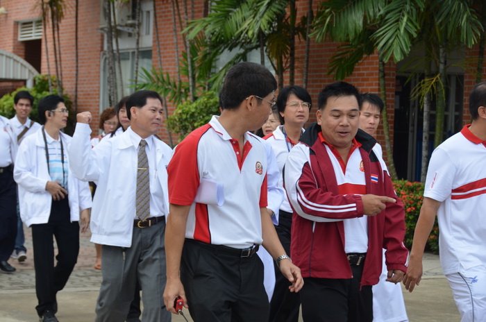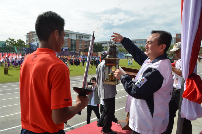 - นักกีฬาคบเพลิงเข้าสู่สนามรับไฟจากประธาน (อ่านประวัตินักกีฬาวิ่งคบเพลิง)