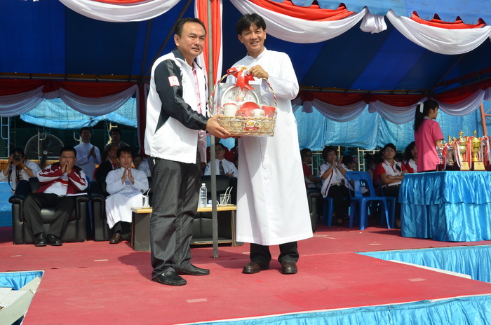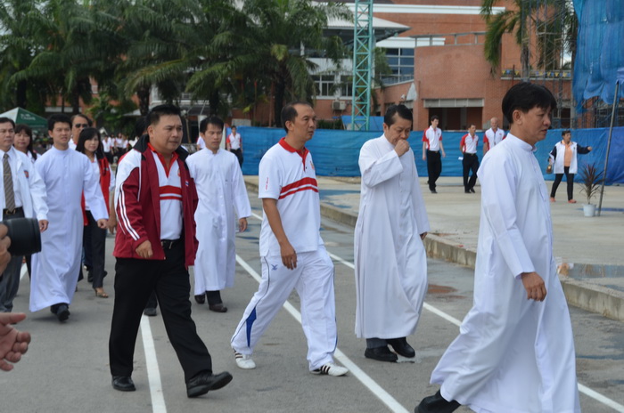 8.30 น.-ประธาน / คณะภราดา / คณะที่ปรึกษาฯ / สมาคมผู้ปกครองและครูฯ / สมาคมศิษย์เก่าฯ เดินเข้าสู่สนามกรีฑา (เพลงสีแดงและขาว)