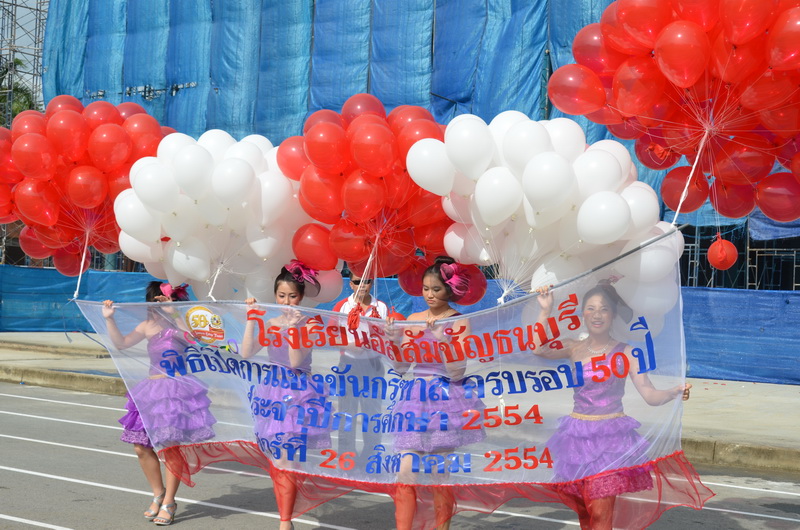 - วงโยธวาทิตนำขบวนพาเหรดเข้าสู่สนาม ตามด้วยนักเรียนบนอัฒจันทร์