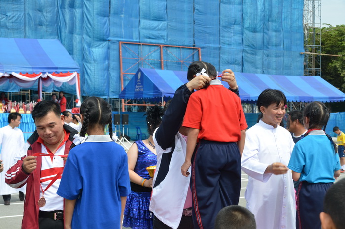 - ประธานจัดการแข่งขันกรีฑาสีอ่านรายงานสรุปผลการแข่งขัน