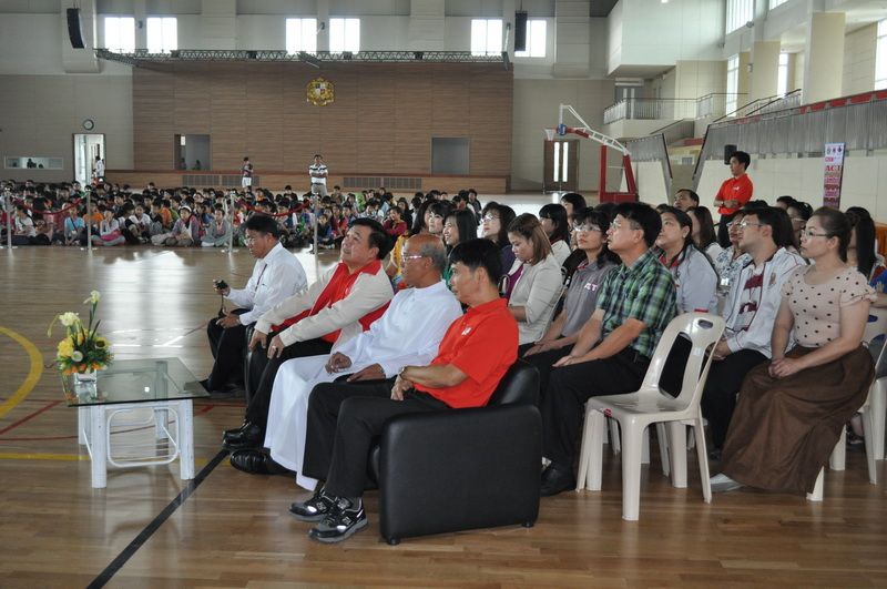 08.30 น. นักเรียน ป.1- ม.3 เข้าแถวพร้อมเพรียงกัน ณ มาร์ตินยิมเนเซียม อาคาร Golden Jubilee