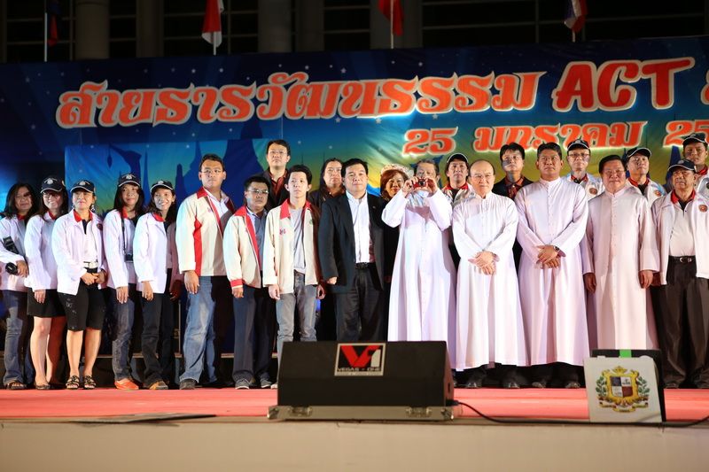 - ประธานในพิธีขึ้นเวที พร้อมคณะภราดา