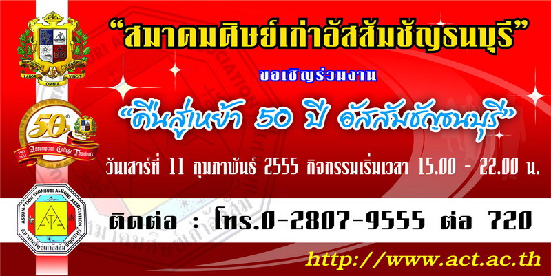 เชิญร่วมงาน คืนสู่เหย้า 50 ปี อัสสัมชัญธนบุรี