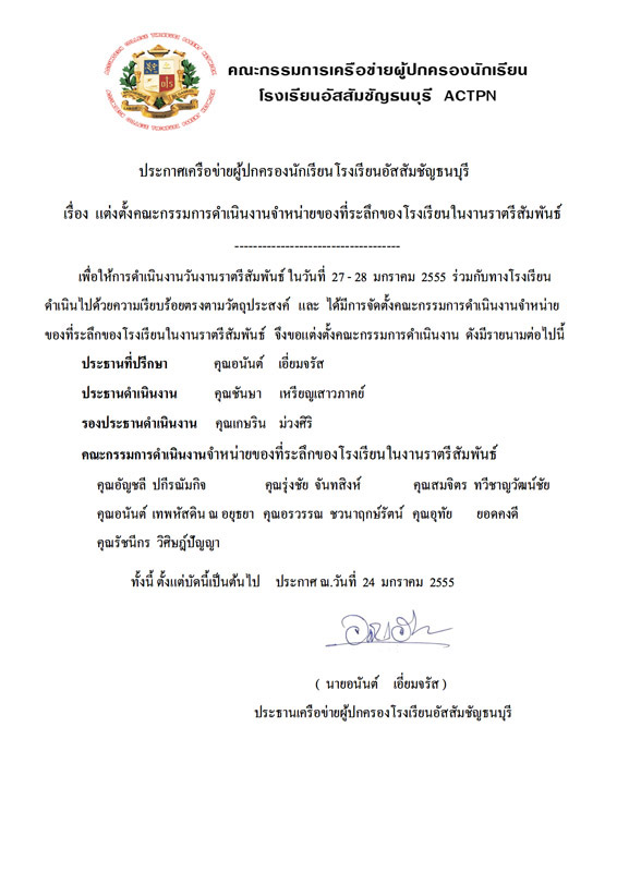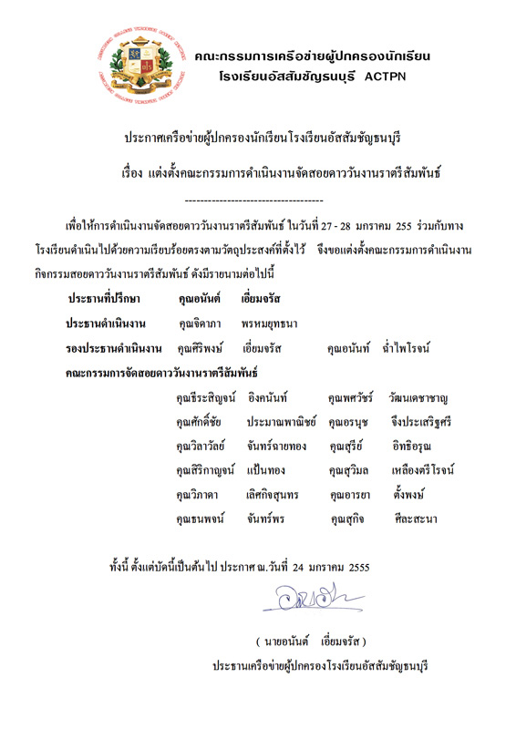 ด้วยผมได้ประกาศคำสั่งคณะกรรมการที่จะดำเนินการจัดงานสอยดาว