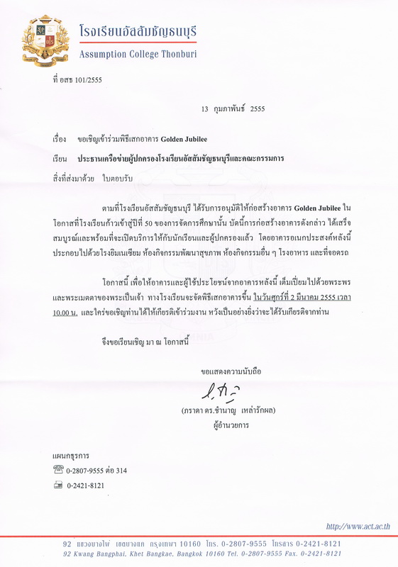 ขอเชิญคณะกรรมการเครือข่ายฯ ร่วมพิธีเสกอาคาร Golden Jubilee