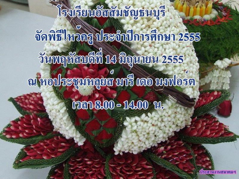 กำหนดการ พิธีไหว้ครู ประจำปีการศึกษา 2555