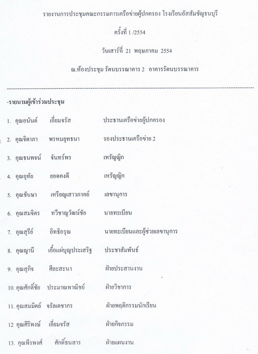 ขอเชิญคณะกรรมการเครือข่ายผู้ปกครองนักเรียนทุกท่าน เข้าร่วมประชุมครั้งที่ 1 / 2554