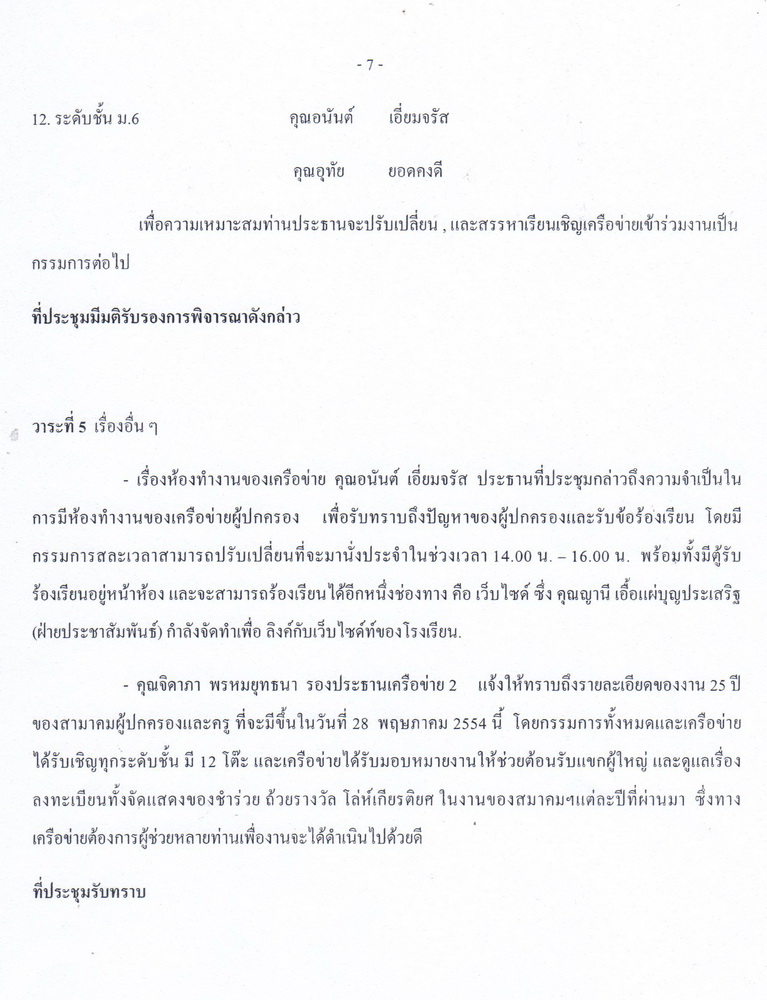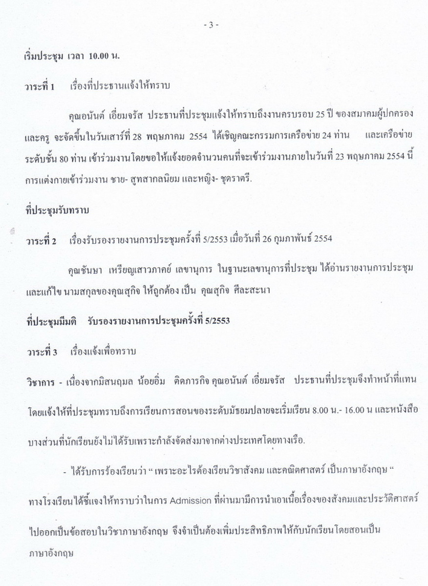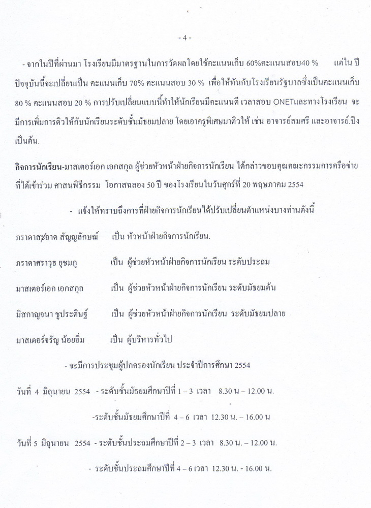 ครั้งที่ 1 / 2554 เพื่อให้การประสานการดำเนินการจัดการศึกษาและส่งเสริมพัฒนานักเรียนดำเนิน