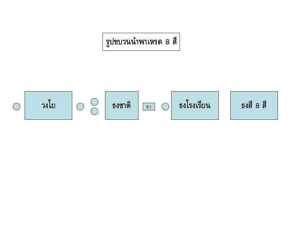 08.00 น. เคารพธงชาติ / สวดมนต์ (เปิดเพลง/สวดมนต์)