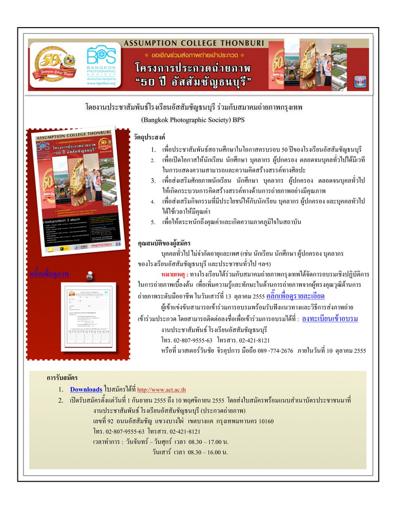 โครงการประกวดถ่ายภาพ " 50 ปี อัสสัมชัญธนบุรี "
