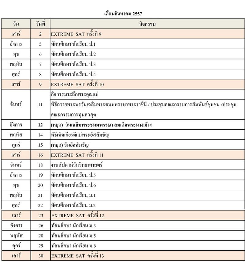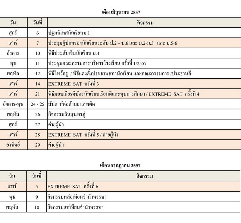 แจ้งปฏิทินโรงเรียน ประจำภาคเรียนที่ 1 ปีการศึกษา 2557