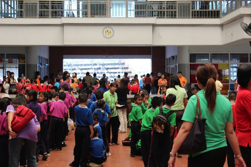 - นักเรียน ป.1 ขยายแถวประจำจุดเตรียมแสดงกายบริหาร (เพลงมาร์ชกีฬาสี)