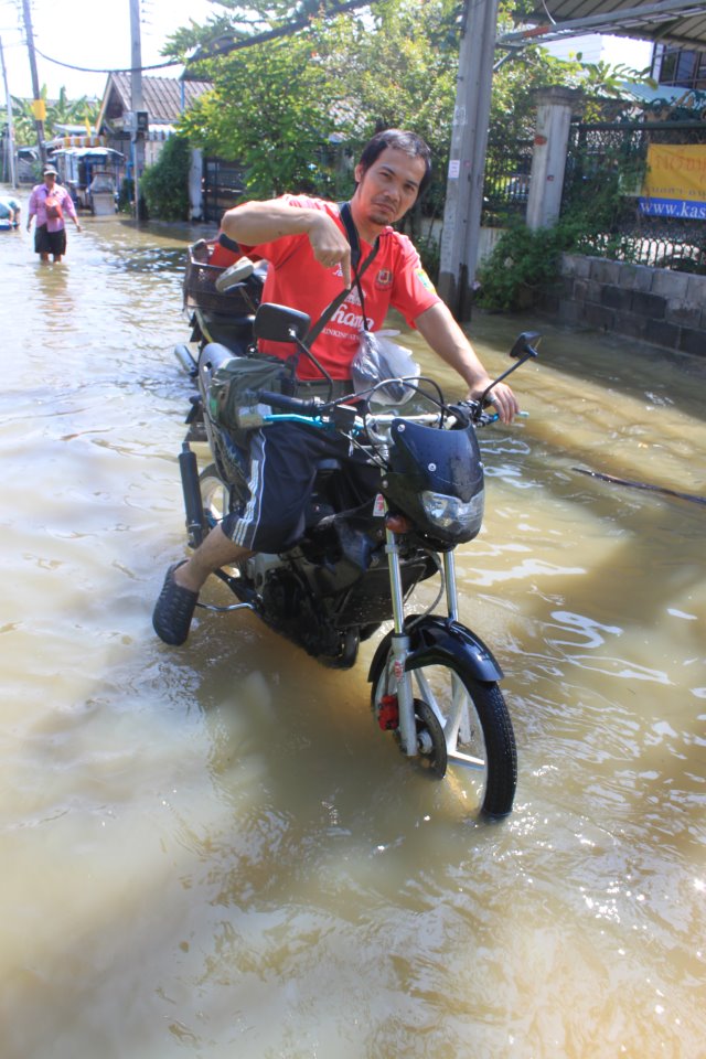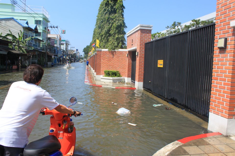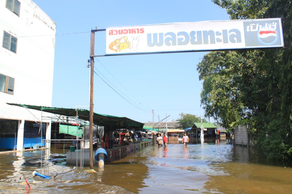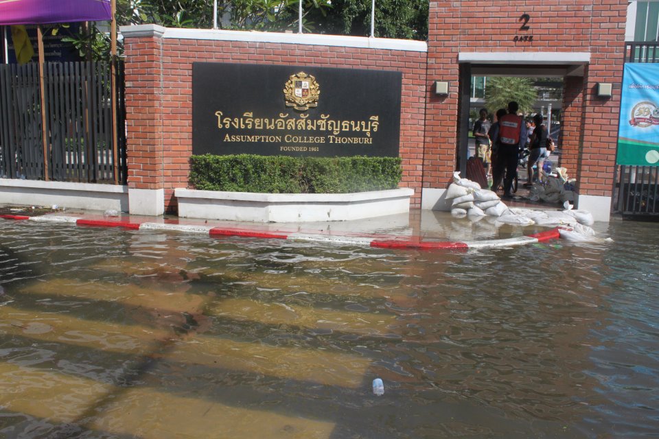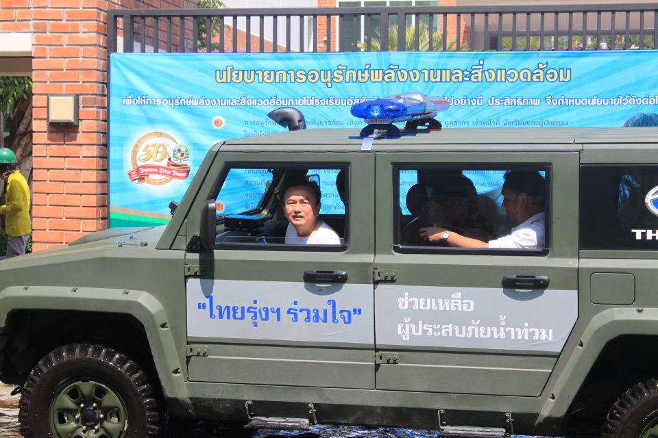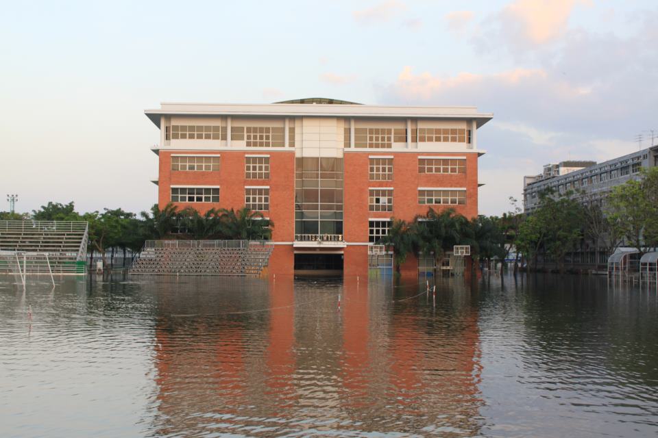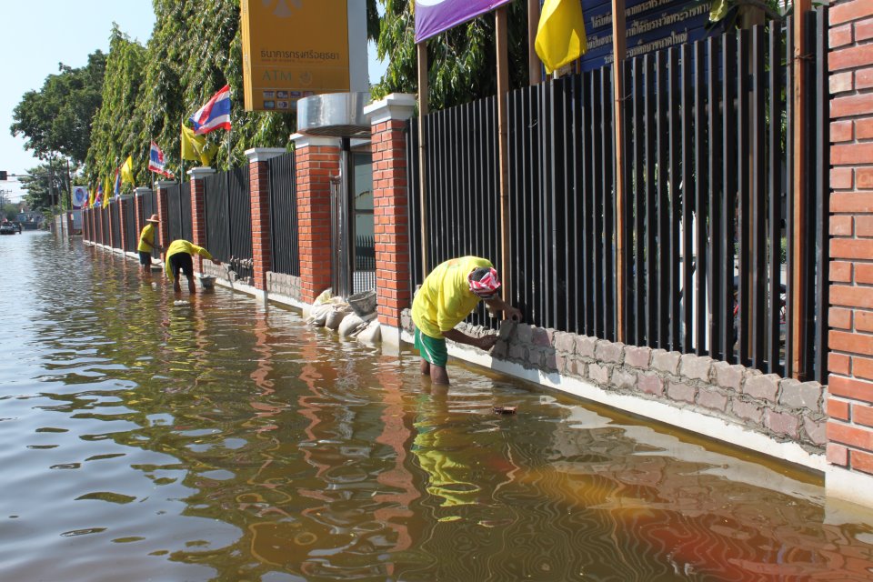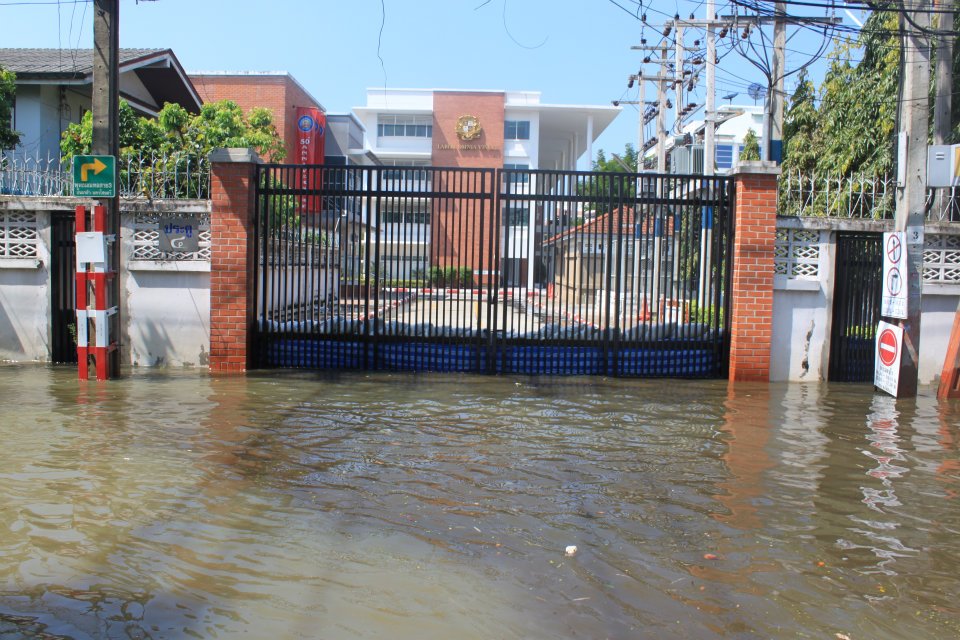 ให้กำลังใจคณะผู้บริหาร คณะครู สู้ สู้ ป้องกันน้ำเข้าโรงเรียน สู้กันเต็มที่