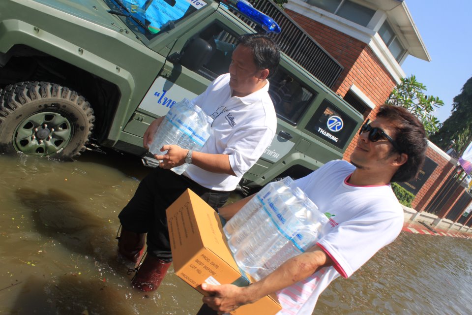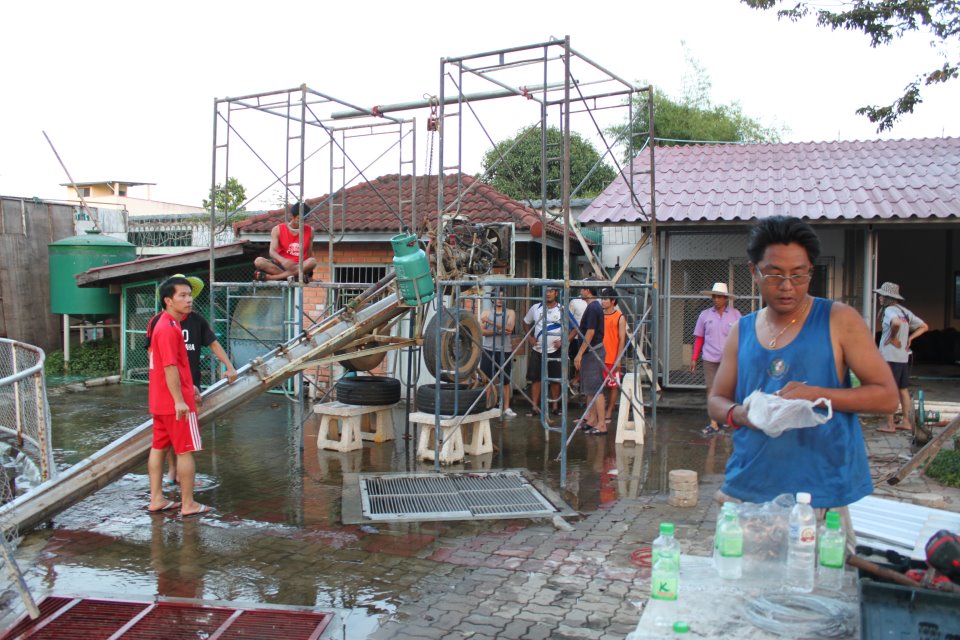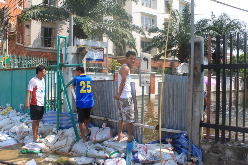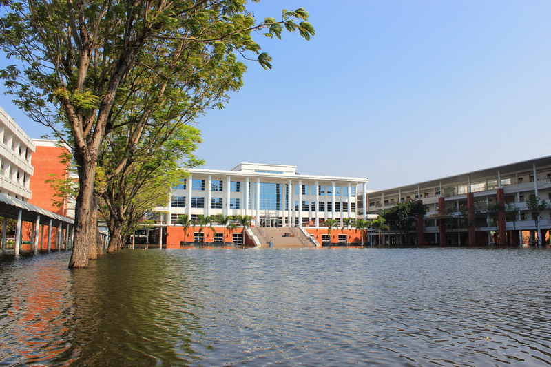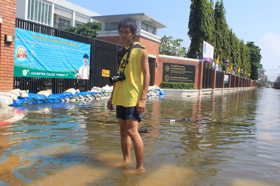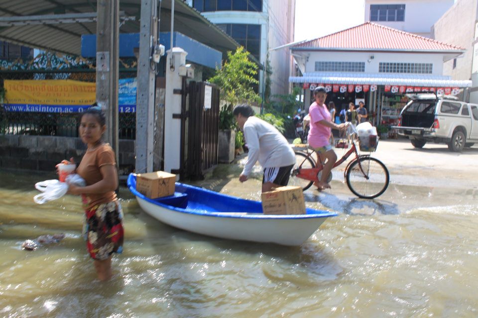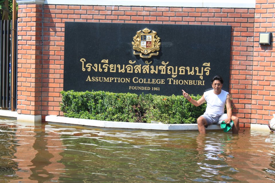 ให้กำลังใจคณะผู้บริหาร คณะครู สู้ สู้ ป้องกันน้ำเข้าโรงเรียน สู้กันเต็มที่