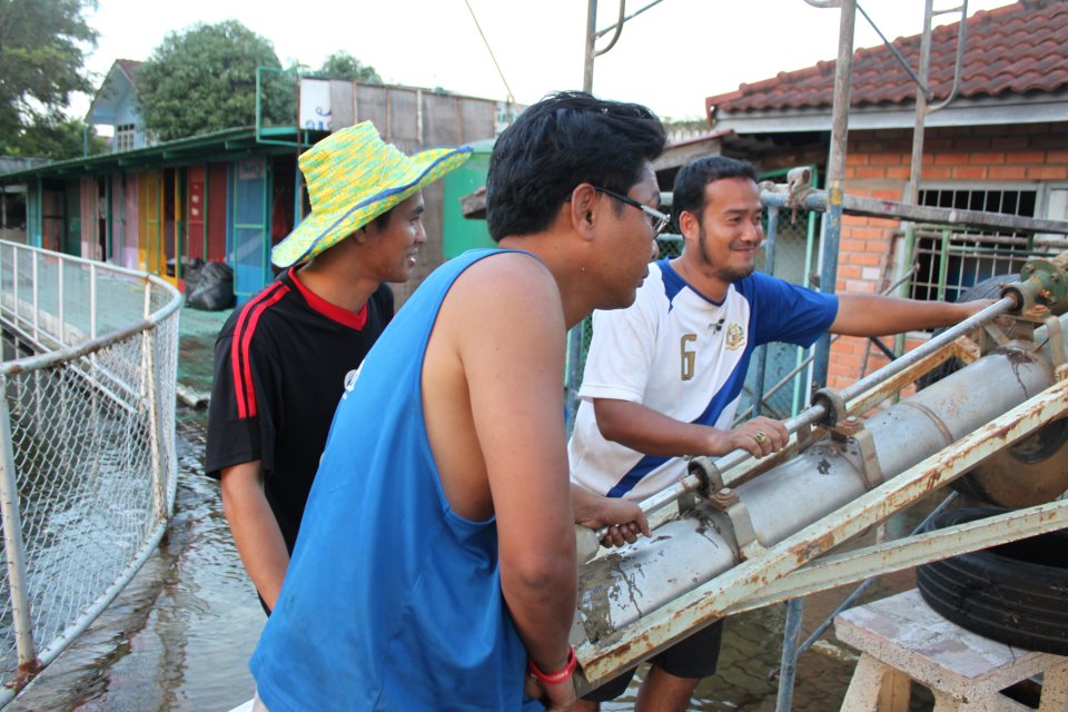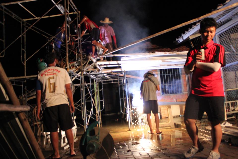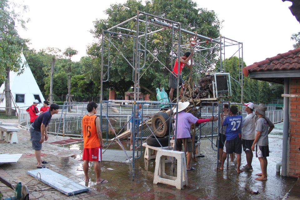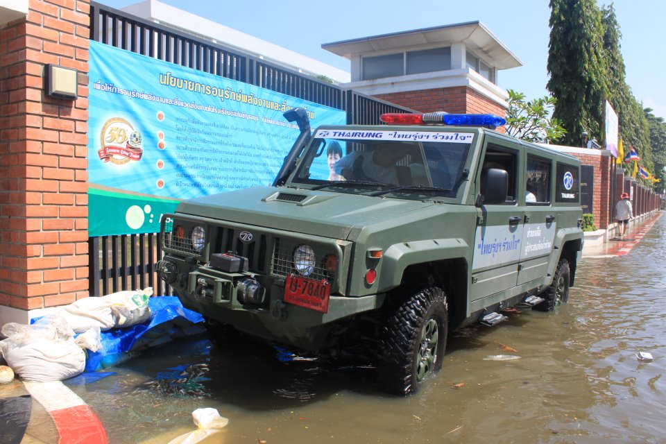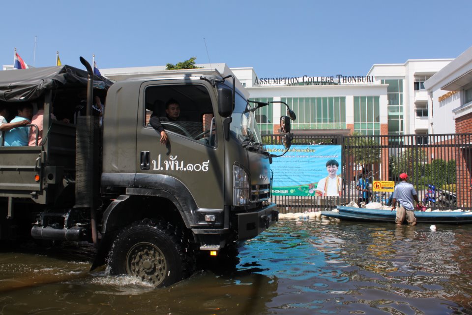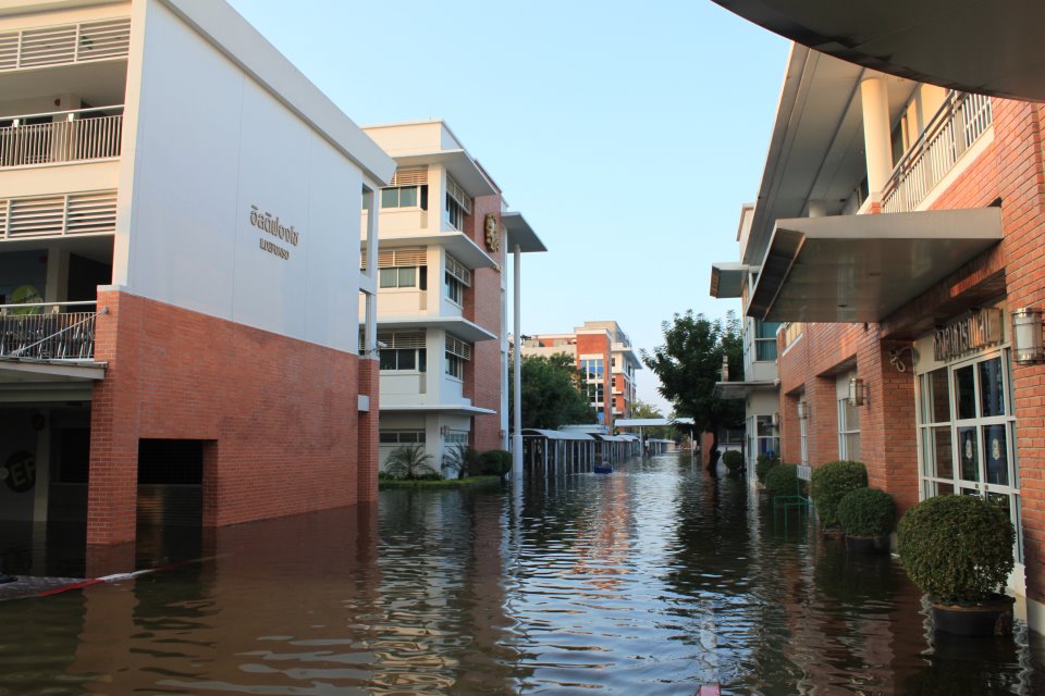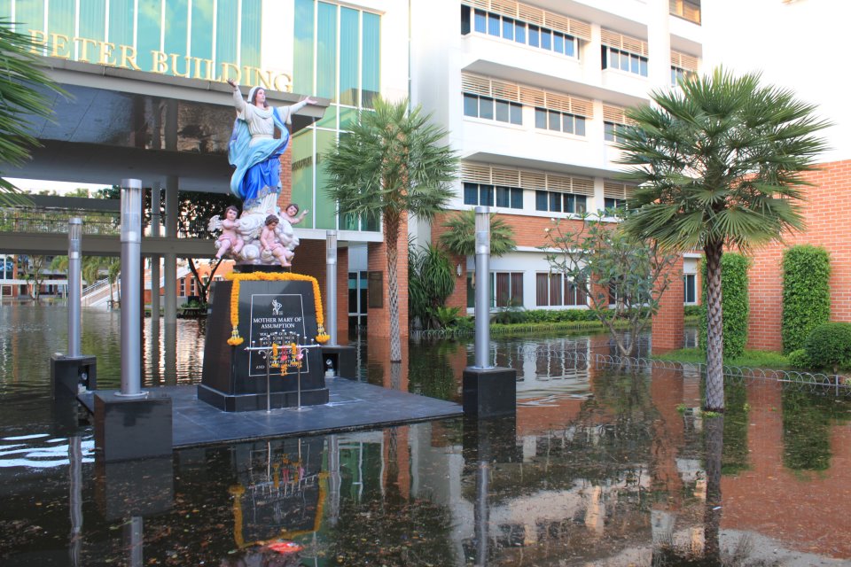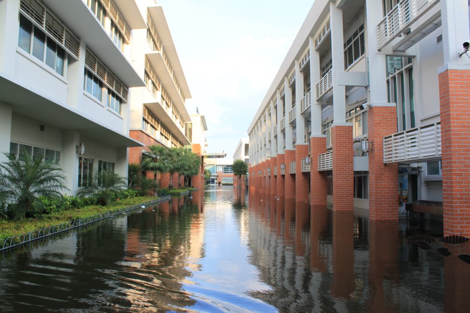 ให้กำลังใจคณะผู้บริหาร คณะครู สู้ สู้ ป้องกันน้ำเข้าโรงเรียน สู้กันเต็มที่