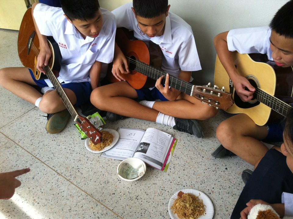 กิจกรรมเปิดหมวก ขับขานเสียงเพลงแลกสตางค์ครับ เข้ากองทุนห้องครับพี่น้อง