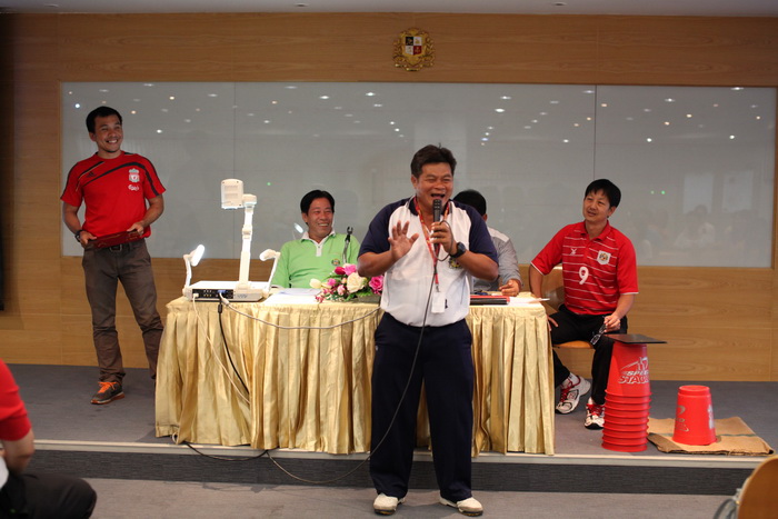 มาสเตอร์สมชาย โสรัจจาภินันท์ หัวหน้าภาควิชาพละศึกษา ผู้จัดกิจกรรมกรีฑาสี