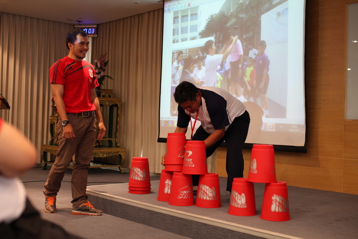 กติกา ผู้แข่งขันจะวิ่งไปวางแสต๊ก ที่วางไว้บนโต๊ะ จะสลับกันชายหญิง หรือ เรียงตามสะดวก ใครเสร็จก่อนชนะ(มีภาพประกอบ)