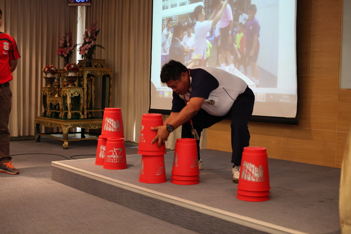 กีฬาแข่งวิ่งแสต๊ก ทีมละ 10 คน ชาย 5 หญิง 5 (ใช้แสต๊กตัวใหญ่ตามภาพประกอบ)