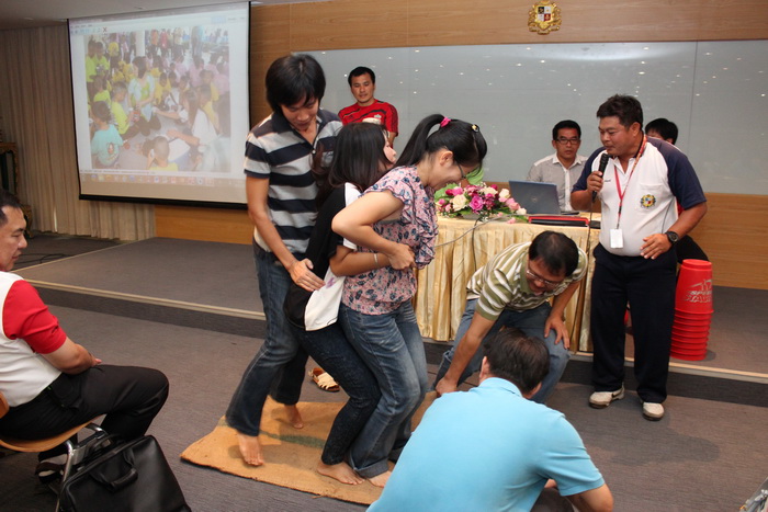 กีฬาแข่งวิ่งแสต๊ก ทีมละ 10 คน ชาย 5 หญิง 5 (ใช้แสต๊กตัวใหญ่ตามภาพประกอบ)