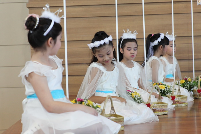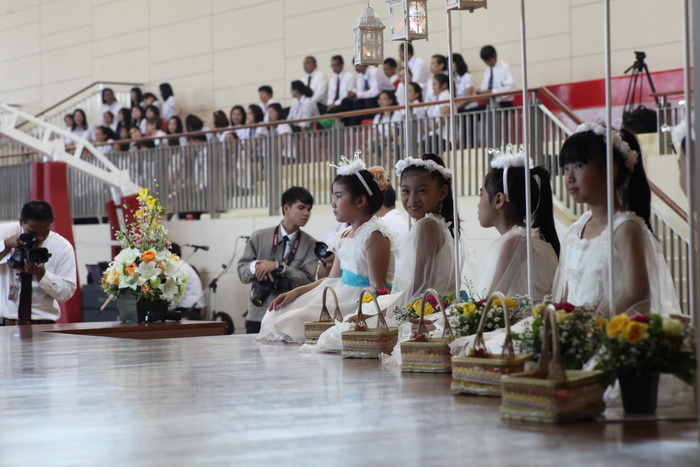 08.40 น. - ขบวนแห่เข้าสู่พิธี / เริ่มวจนพิธีกรรม เพลง วันนี้เราแสนยินดี