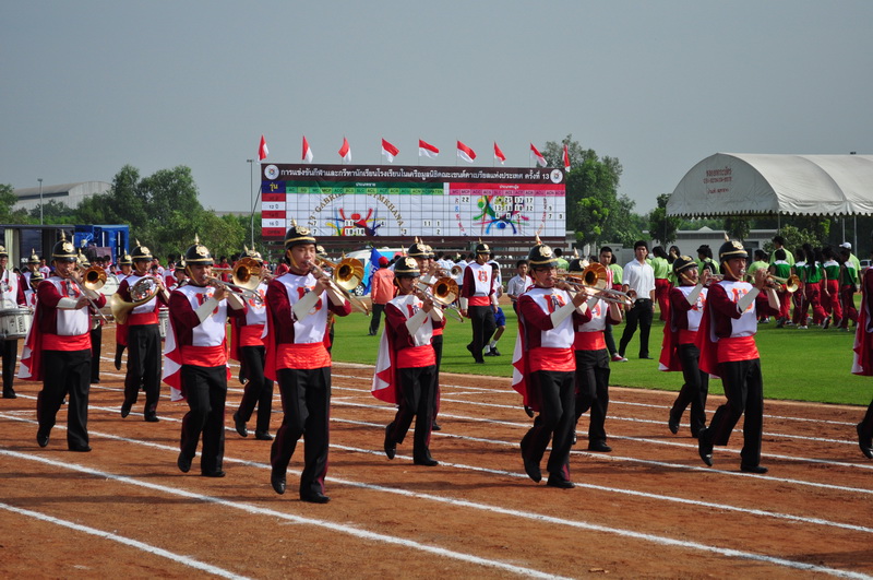 เวลา 08.30 น. วงโยธวาฑิตและชบวนนักกีฬาจัดขบวนตามแผนผังที่ตั้งขบวนพาเหรด