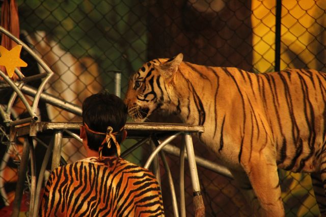 เร็ว ๆ ไปดูการแสดงของเสือกันจ๊ะ น่าตื่นเต้นนะ